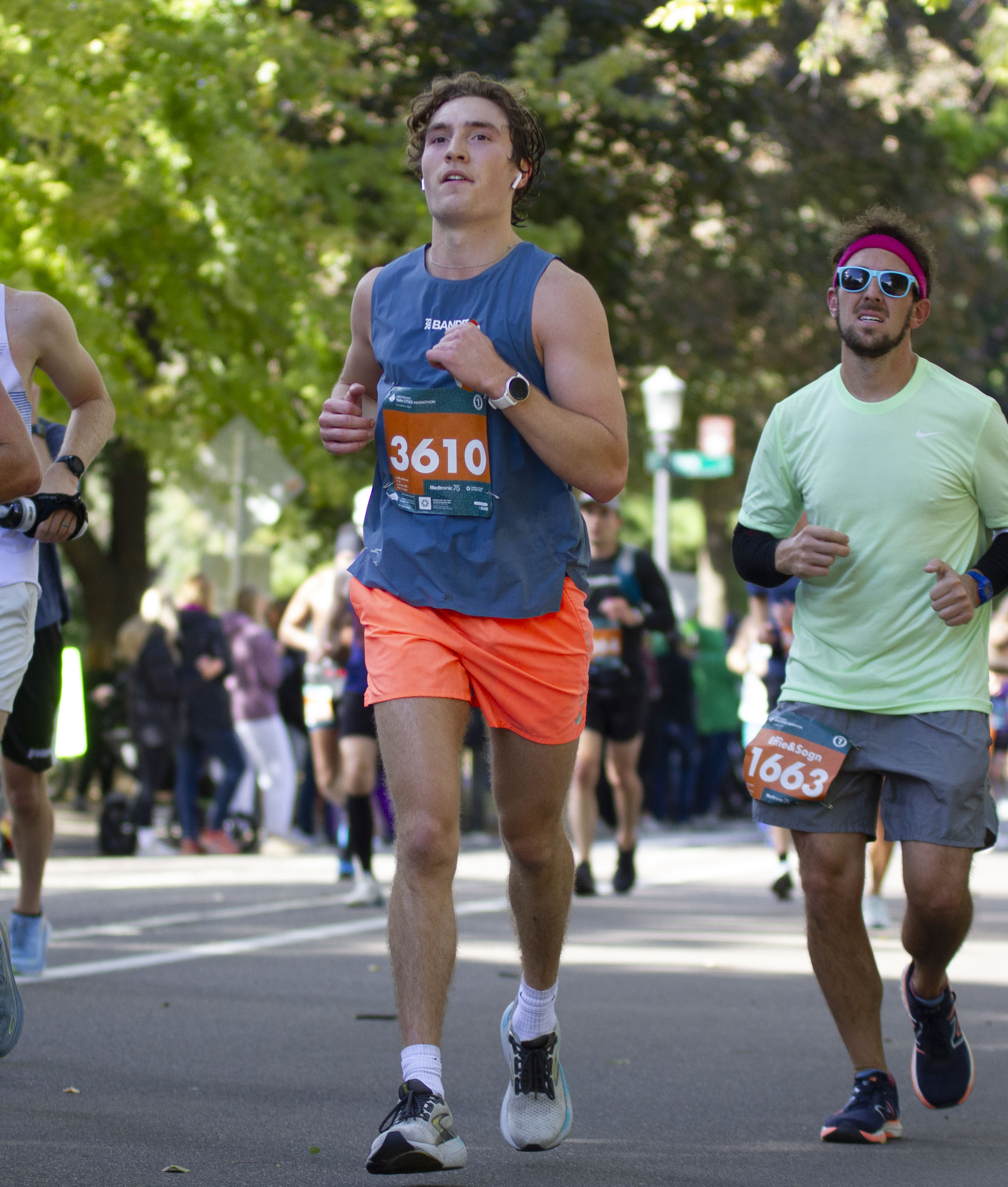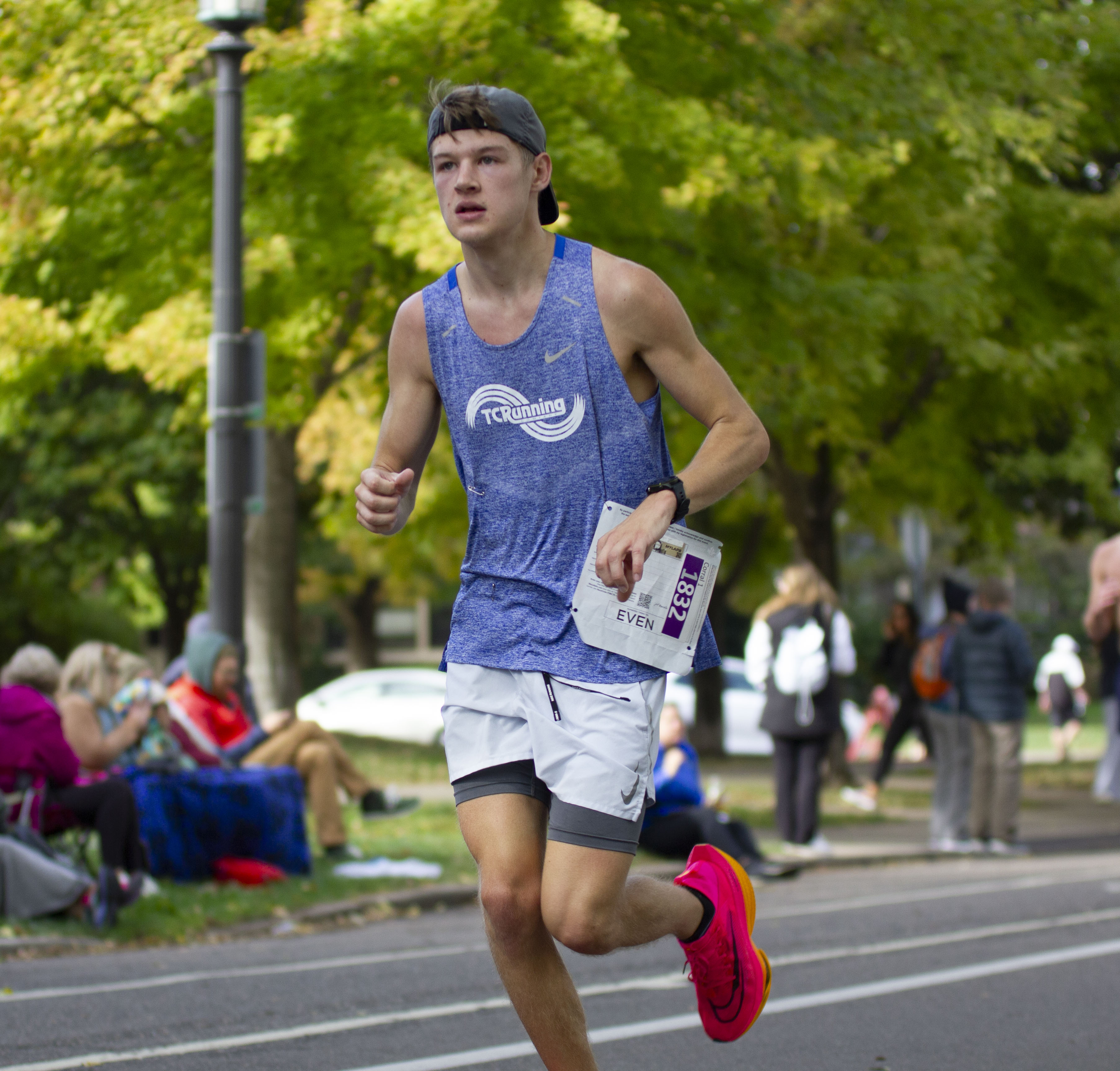 St. Thomas junior Griffin Pehrson runs the Twin Cities marathon. (Eli Andersen/The Crest)