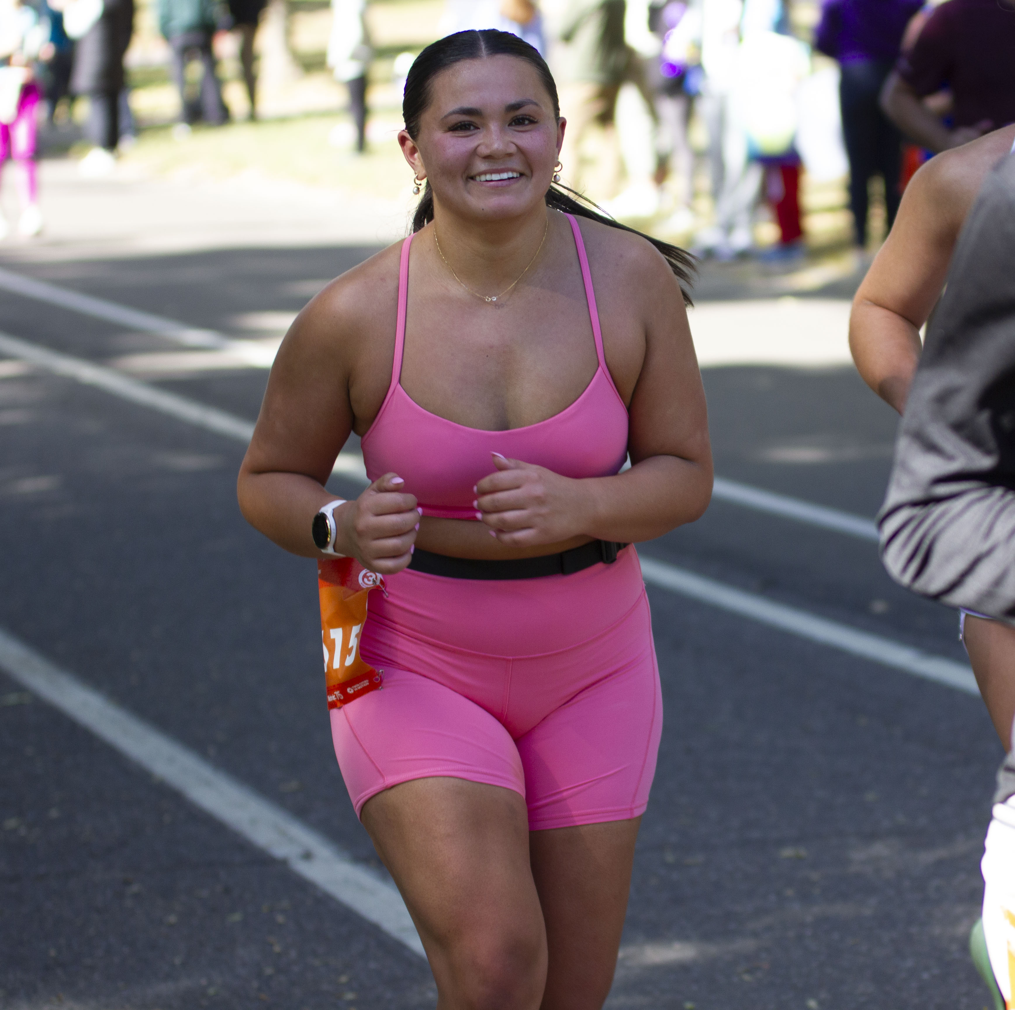 St. Thomas junior Halle Runez runs the Twin Cities marathon. Thousands of others participated in the marathon on Oct. 6, 2024(Eli Andersen/The Crest)
