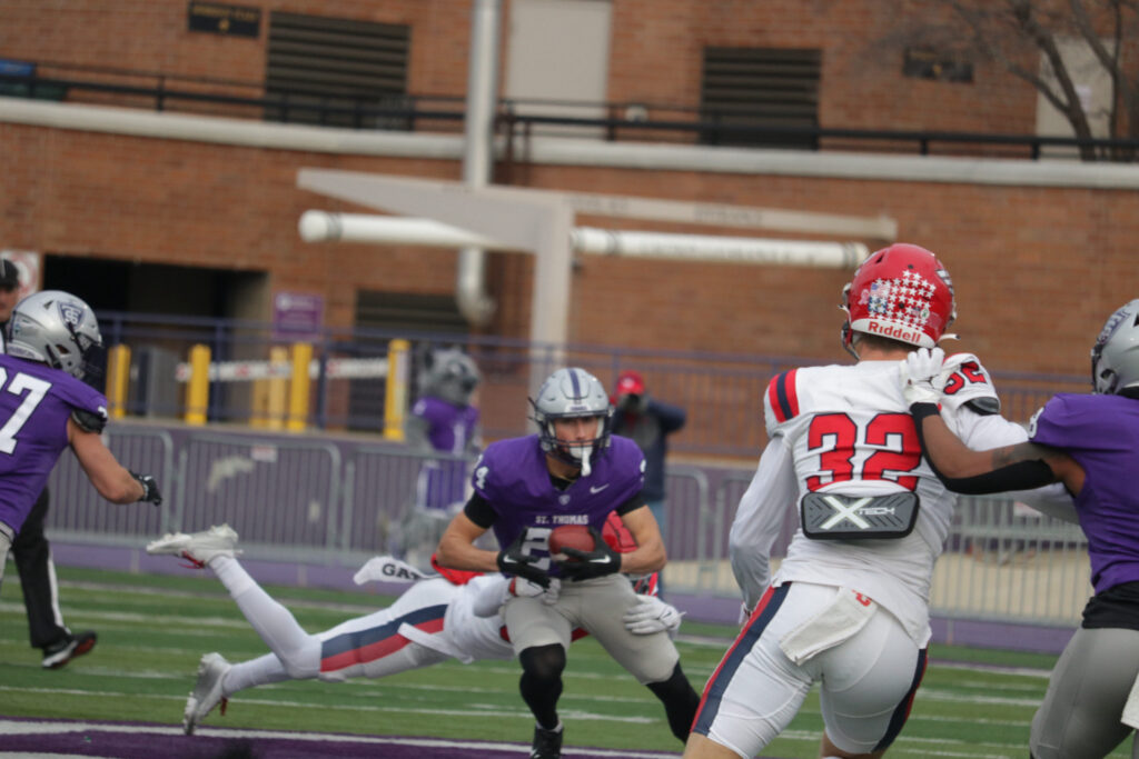 The team honored the seniors by cleaning up mistakes that had plagued the team throughout the season, especially during the team’s three-game skid entering Saturday’s game. The Tommies scored on three of their four red zone appearances and avoided special teams blunders that were becoming common.