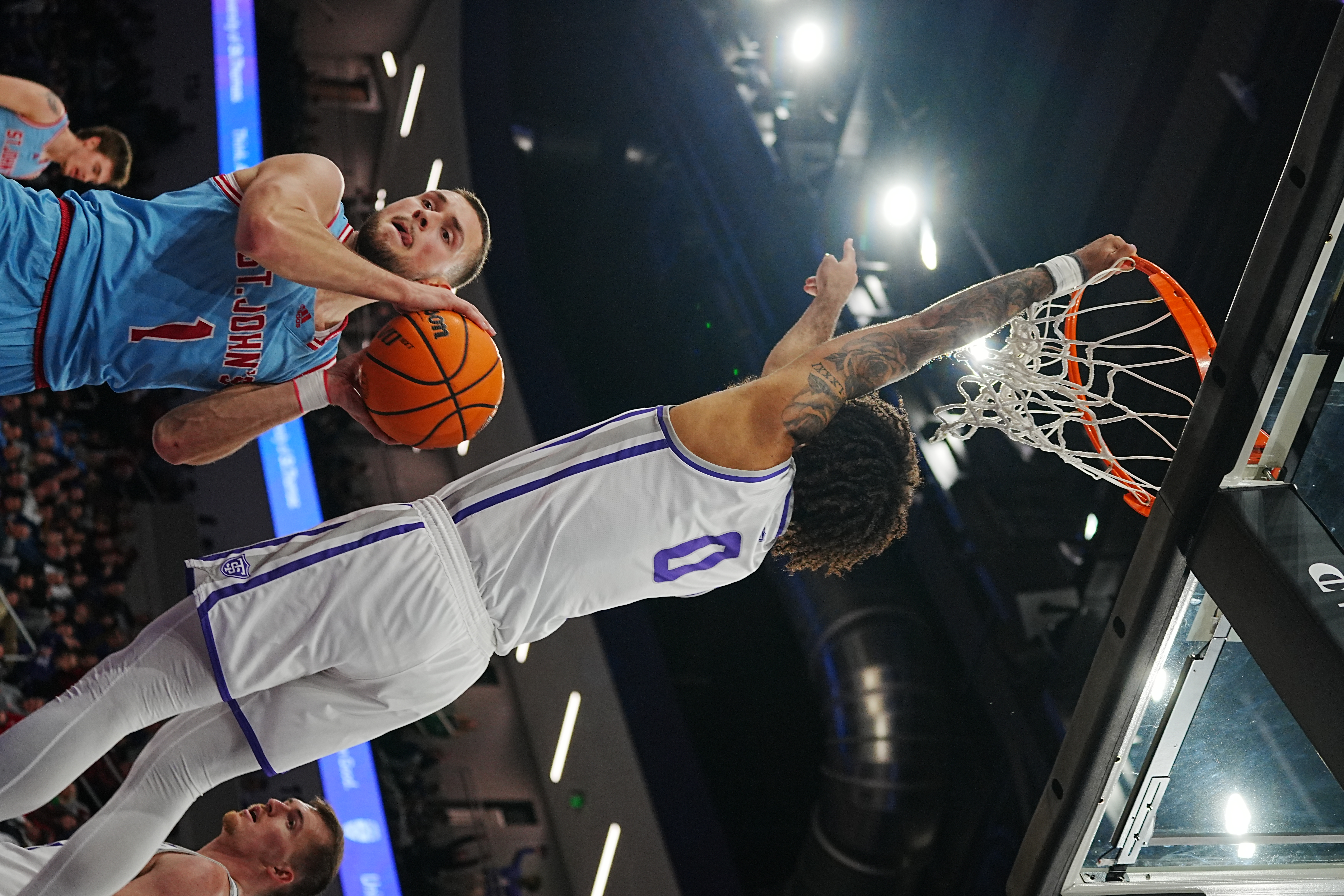 “I’m from here, so I’ve seen a little bit of the rivalry growing up, going to some of the St. Thomas games and seeing them play. It was definitely fun to be a part of (the rivalry) and the student turnout was amazing,” sophomore forward Isaiah Johnson-Arigu said.