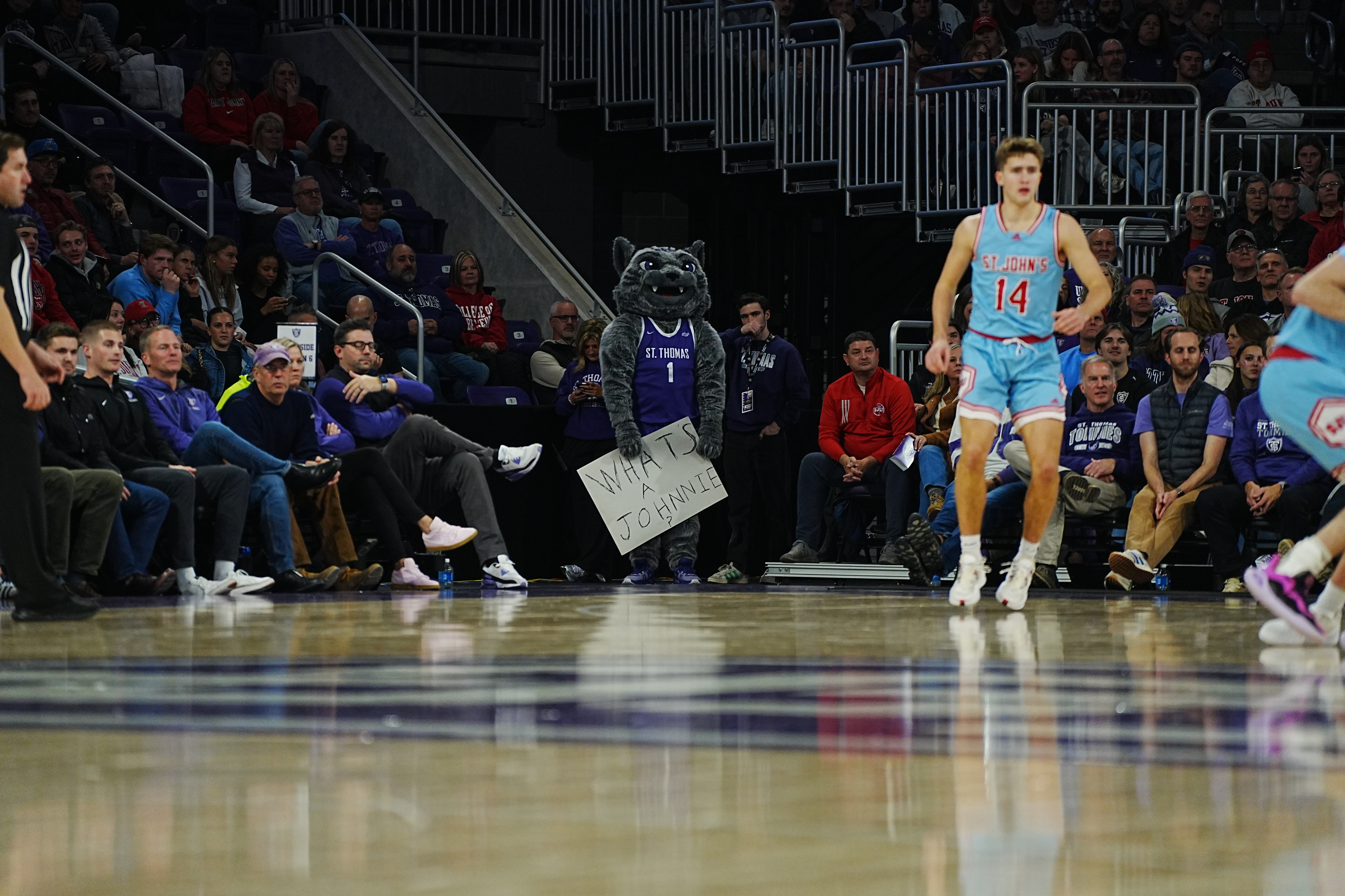 The Lee and Penny Anderson Arena emulated a time machine Thursday night for the 80-56 St. Thomas victory over the Johnnies. The historic rivals faced each other for the first time in over four years. The arena divided in red and purple, though St. Thomas played in white jerseys and St. John’s in light blue.