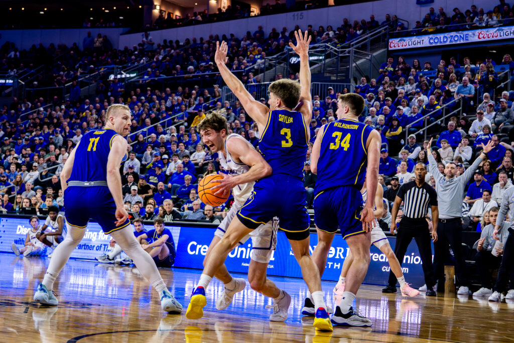 Redshirt first-year guard Nick Janowski’s ten points and three steals, and Johnson-Arigu’s eight points and block, added to the effort that sent more than 6,000 Jackrabbit fans back on the hour-long drive north.